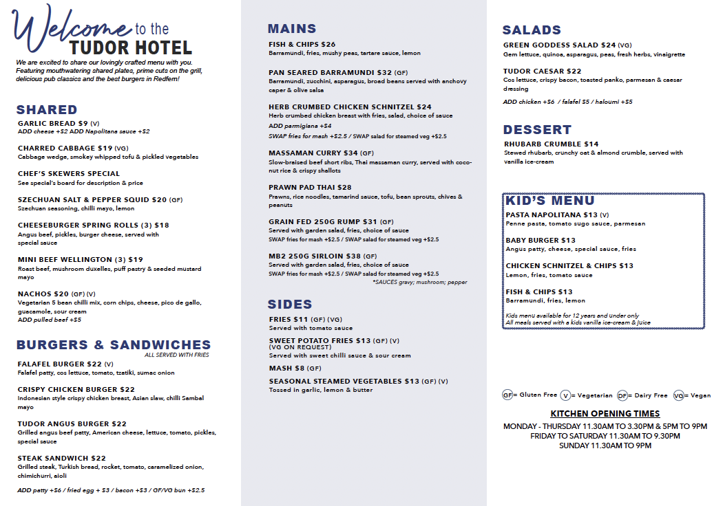 Open 7 days a week, The Tudor offers hearty daily specials, live music, live & loud sport on the big screen and plenty of spots to settle in for a drink, including the back terrace/beer garden; perfect for an afternoon catch-up.